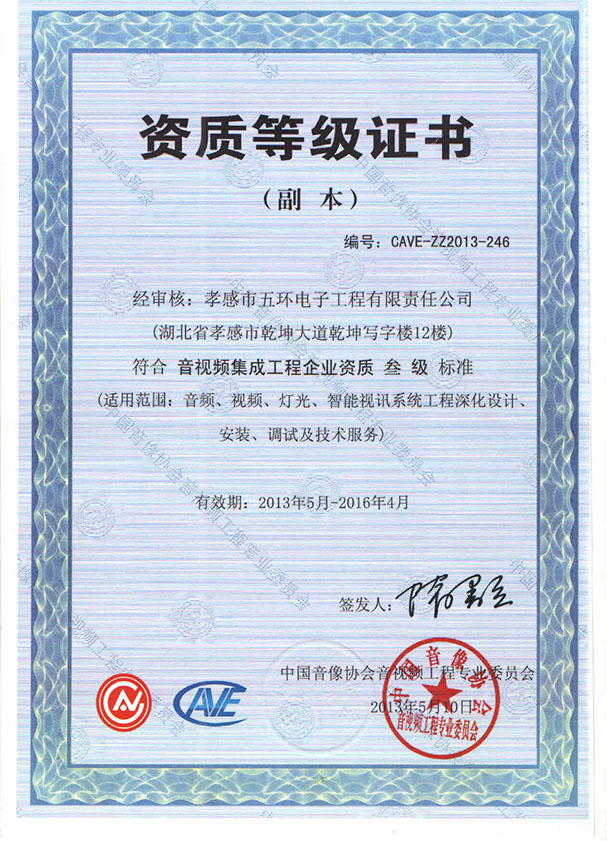 音視頻資質等級證書(2013)